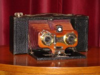 Here you can find the cameras from the 1900's. The most prominent 'family' of models from the era are the Folding Pocket Kodaks. They started in 1897 but I list them here because they are typical for the first decennium of the 20th century. Also the special purpose Kodaks are shown here, like the stereo cameras and the Panoram line. Please select a camera from the menu on the left. If you want to identify your Kodak camera, please try my tool on the page with that name. Some examples from my collection No. 2 Stereo Brownie